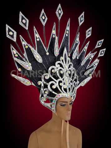 The Headdress is a simple one with black and silver crystal sequins. It also has spikes attached with it which makes it look even more attractive. The Headdress is extremely charming and graceful. It is hand decorated with high quality materials.