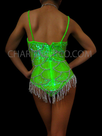 • A stunning customized sequin leotard that is perfect for stage performers and dancers.