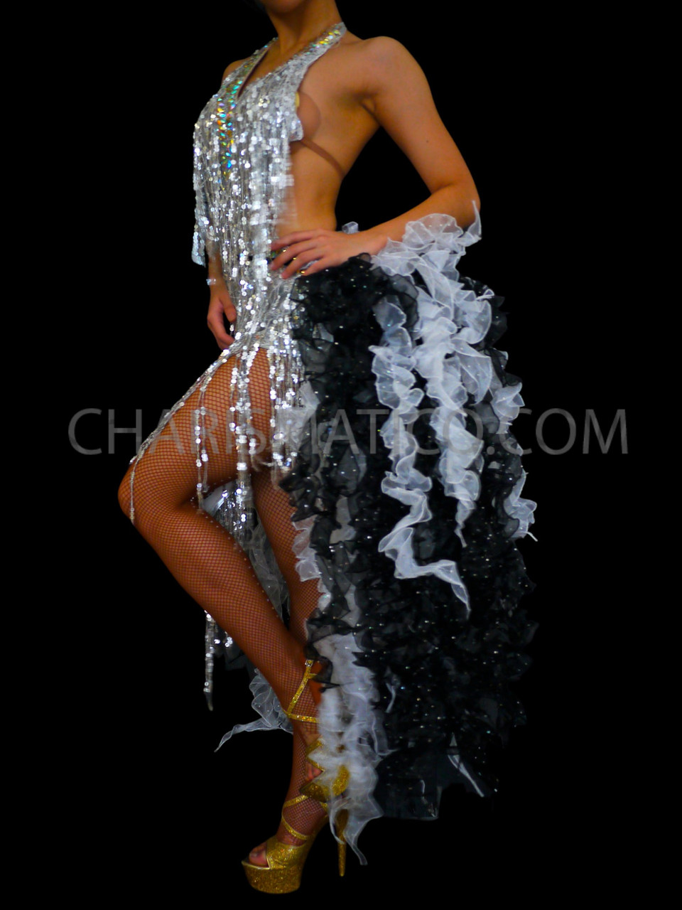 Black White Burlesque Buttock Tail Latin Salsa Dance Dress