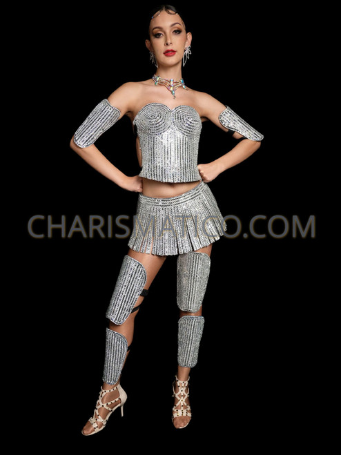 Our Silver Rhinestone Disco Ball Corset Costume Set