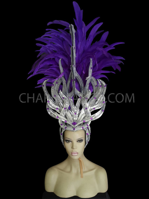 Brilliant Looking Purple Feather Headdress With Silver Glitter Work