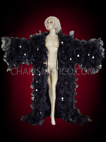 • Customized ruffled organza coat that is perfect for stage performers and drag queens.