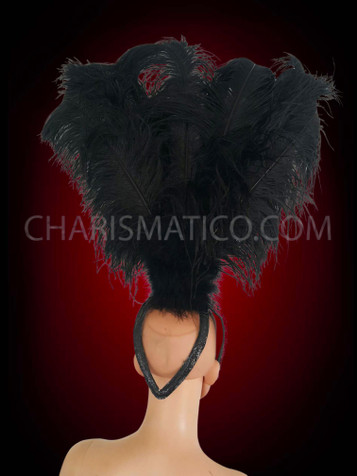 Cabaret Showgirl'S Silver Shoulder Spike Backpack With Black Ostrich Plumes