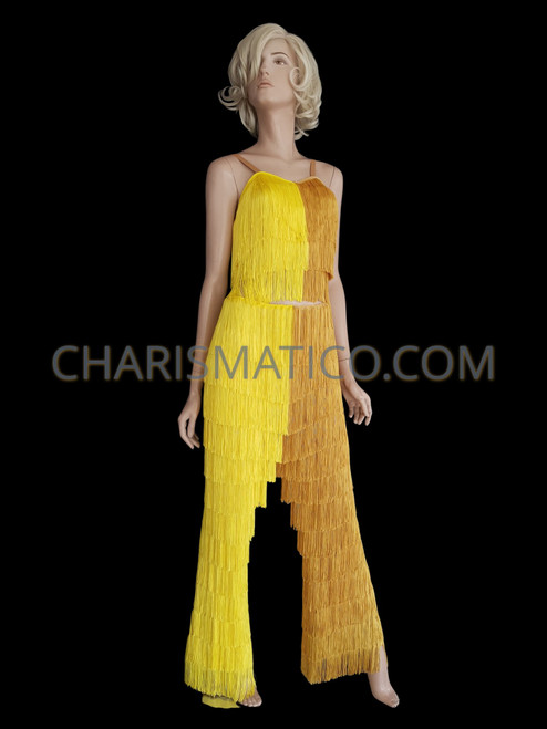 This is a dress that is ideal if you want to grad the spotlight and leave a lasting impression on the audience minds. The shiny yellow color of this fringe pant is enough to rightly appeal to your audience as a performer. The fringes add a flair to this costume perfectly.