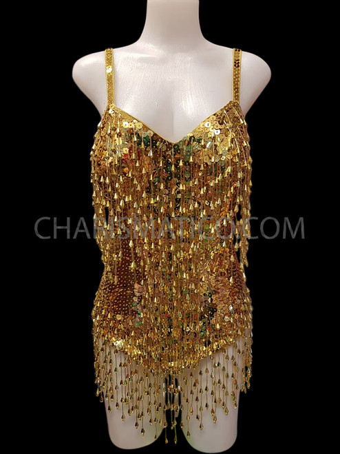 Classic Styled Gold Beaded Fringe Showgirl's Costume Base Dance Leotard