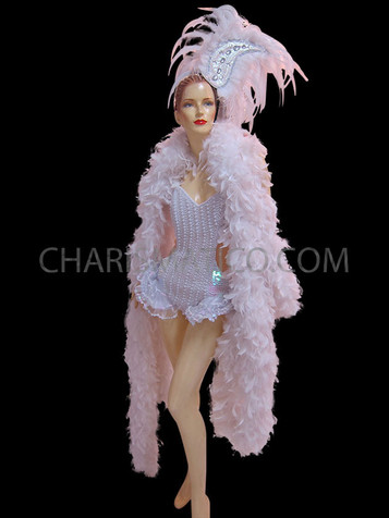 • A Stunning made to measure costume set, which consists of headdress, leotard and feather boa