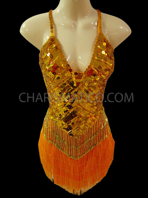 Black And Gold Striped Sequin Gold Fringe Batchata Dance Dress