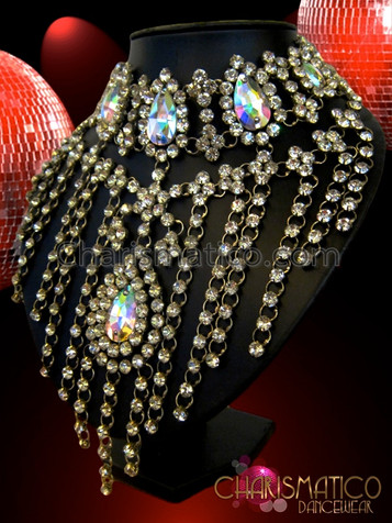 Crystal Studded Ruby Accented Rhinestone Black 70's Style Diva Leotard