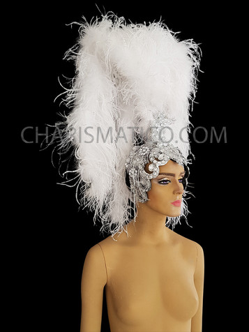 Diva Yellow Ruffled Silver Sequinned Ostrich Headdress