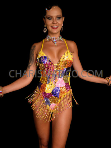 • A stunning customized leotard that is perfect for music festivals, EDM parties, and rave events.