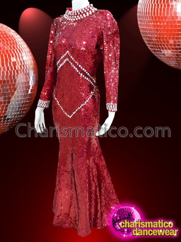 • A stunning customized sequin gown that is perfect for drag queen costumes and stage entertainers.
