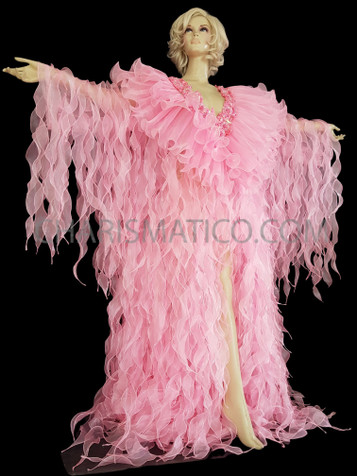 Frenzy Peach Pink Organza Drag Coat with Fringe Trim