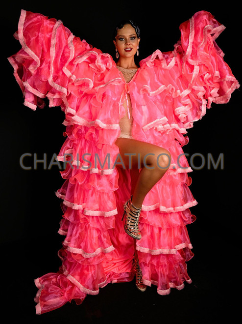 Step out in style with the Fringe frenzy organza coat, featuring chic and edgy fringe trim. This coat is perfect for anyone looking to add a touch of boho style to their stage performance, while also staying chic and sophisticated. The fringe details add movement and texture to the already beautiful organza fabric, making this coat a true statement piece. With its stunning organza fabric, it adds an elegant touch to any outfit. The fringe trim is unique and appealing, adding movement and texture to the coat. The coat is designed with an open-front design that makes it easy to layer over your favorite tops and dresses.
