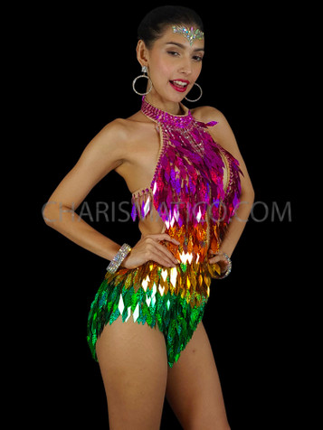Fuchsia Nude Sequin And Silver Sequin Dance Leotard Clearance Us 2-6