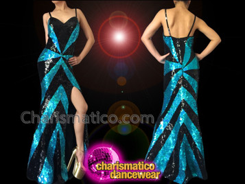 Full Length Iridescent Blue Diamond Shaped Sequin Pageant Gown