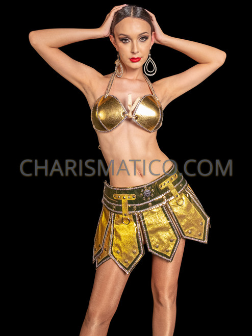Gold Roman Gladiator Burning Man Bra and Skirt Set