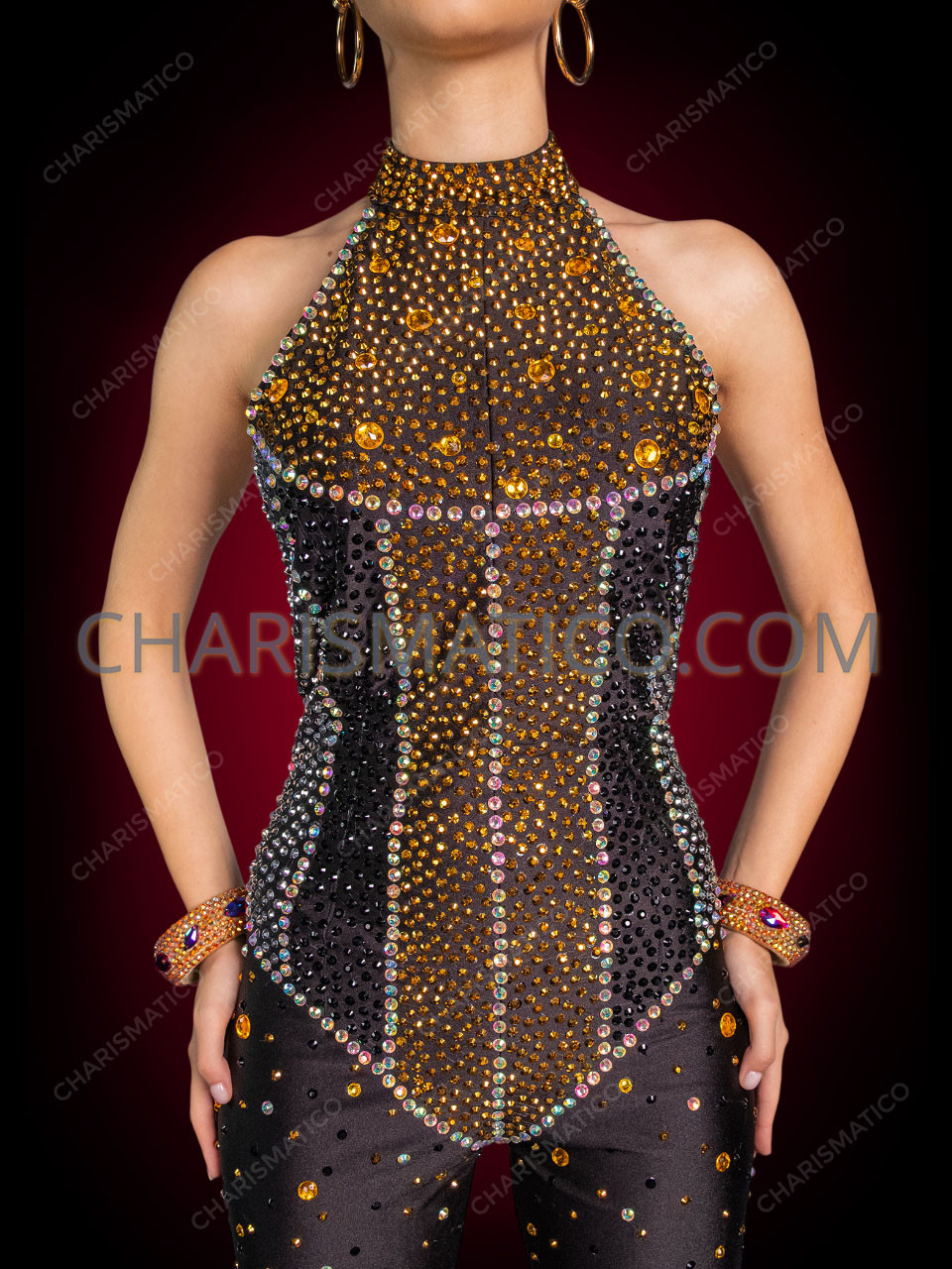Golden Stardust Rhinestone Bachata Dance Halter Jumpsuit