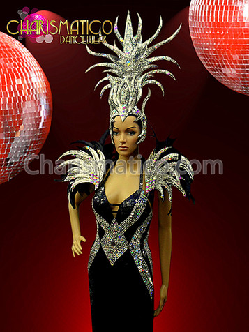 • Each individual mirror tiles and crystal that creates the design is hand glued into the headdress