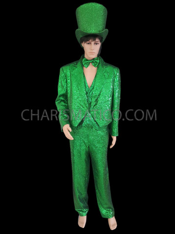 • A beautiful sequin jacket, vest, pants and top hat set that is perfect stage entertainers.