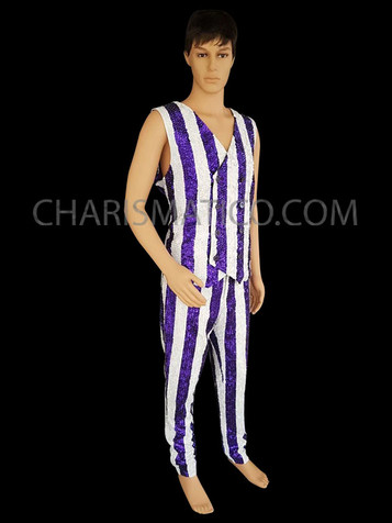 • A beautiful sequin jacket, vest, pants and top hat set that is perfect stage entertainers.