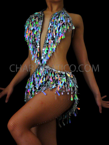 • A stunning customized beaded leotard that is perfect for stage performers and dancers.