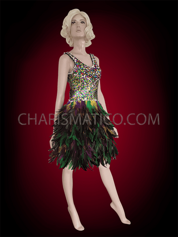 Iridescent Pink Sequin Dress With Boa Feather Tail Skirt Costume