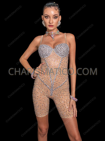 Step into pure show-stopping glamour with this Luxe Nude Illusion Mirror-Studded Showgirl Bodysuit with Shoulder & Hip Fringe, a masterpiece crafted for performers who demand maximum shine and dramatic stage presence. The nude mesh base creates a stunning second-skin illusion, while the bodice is sculpted with hand-placed reflective mirror crystals that contour and highlight every curve. Structured shoulders adorned with cascading silver fringe add dynamic movement, matched by shimmering hip fringe that sways beautifully with each step, turn, and dance combination. Perfect for showgirls, drag performers, cabaret artists, and high-impact stage acts, this bodysuit delivers a bold fusion of elegance, sparkle, and performance-ready drama from every angle.