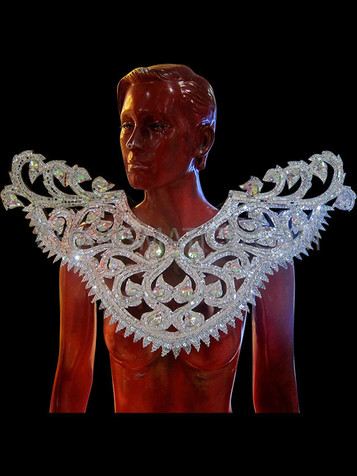 • Each individual mirror tiles and crystal that creates the design is hand glued into the collar