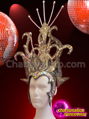 Mirror Tiled and Crystal Encrusted Men's Silver Shield Cabaret Piece
