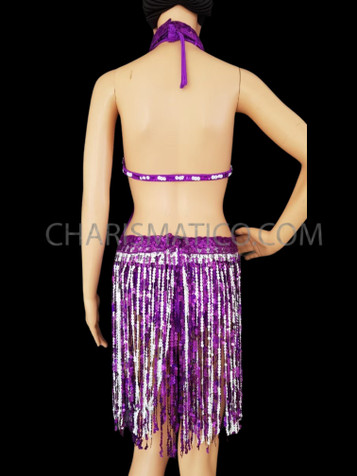 Multi Tone Red Sequin Dress With Long Sequin Fringe Skirt