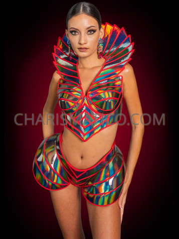 Step into the future with our Neon Pink Futuristic Cyberpunk Sci-fi Corset. Crafted from high-quality vinyl fabric, this corset embodies the essence of cyberpunk and sci-fi fashion. The vibrant neon pink hue commands attention, while contrasting black patterns add a touch of intrigue and depth, making it the perfect statement piece for any futuristic ensemble. With its sleek and edgy design, this corset promises to transport you to a world where technology meets style, allowing you to embrace your inner cyberpunk heroine with confidence and flair. Whether you're attending a sci-fi convention, a cyberpunk-themed party, or simply looking to elevate your everyday wardrobe, our Neon Pink Futuristic Cyberpunk Sci-fi Corset is sure to make a bold and unforgettable statement.