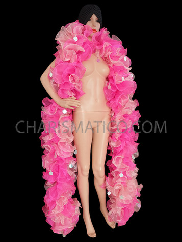 Neon Pink Organza Ruffle Boa With Silver Trim Sequins