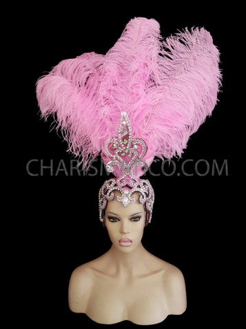 Pale Pink Feathers Standing Shimmering Ostrich Headdress