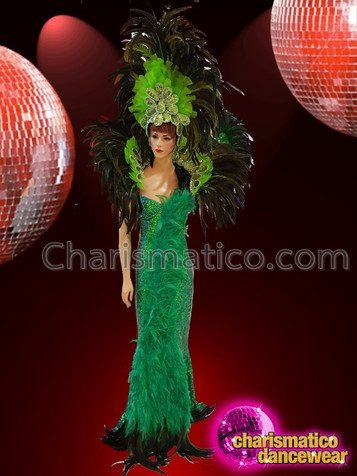 Parrot Green Beaded Floor Sweeping Feathered Long Diva Girl Costume