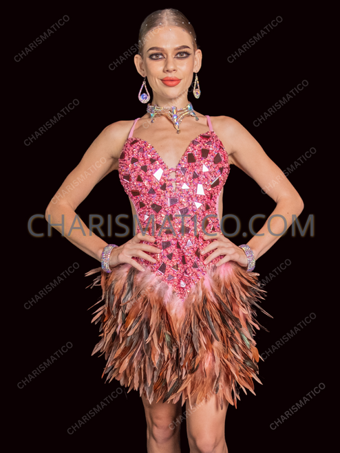 Pink Sequin Mirror Feather Fantasy Dress
