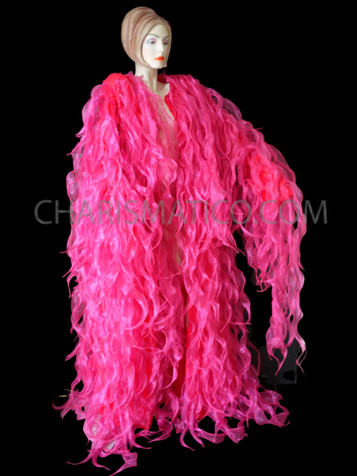 Look unique and bold in this elegant and stunning organza ruffle coat. This adorable and sexy jacket comes in a unique pink hue for a hot and eye catching look. The coat comes in complete ruffles, perfect to be paired with a body con jacket.