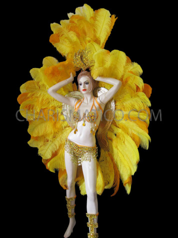 • A Stunning Feather Collar Backpack and Headdress that has been built on a special wire construction