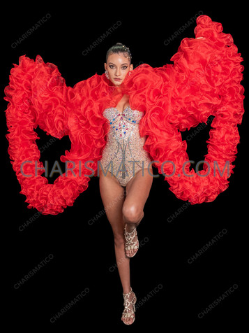 • A customized sequin bodysuit and matching Ruffled Organza Shoulders.