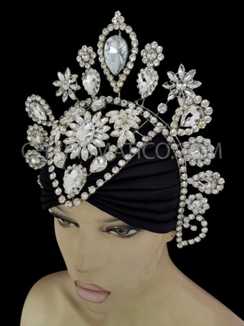 •  A Stunning crown that has been built on a special wire constructionHand decorated with Beads and Glass all over the headdress