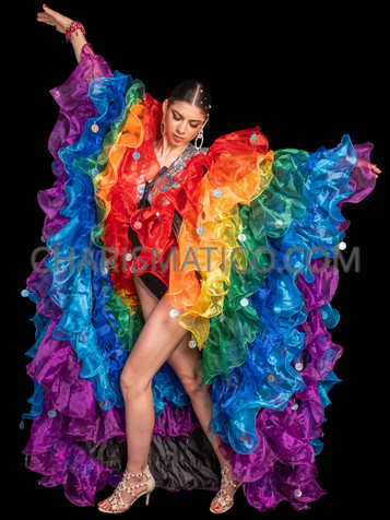 Who doesn't love ruffles to catch the eye? A must any Pride event, this rainbow colored ruffled organza coat will definitely finish off your costume with grandeur.