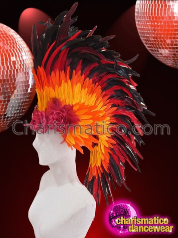 Command attention with the Rainbow Mohawk Carnival Feather Headdress with Jewel-Encrusted Frame, a bold and electrifying statement piece perfect for high-energy performances. Crafted from premium rooster feathers, this headdress features a dramatic mohawk-style arrangement in a vibrant spectrum of colors, creating an eye-catching, dynamic effect with every movement. The handcrafted jewel-encrusted frame, adorned with multicolored rhinestones and shimmering gold accents, adds a touch of luxury and sparkle, making it ideal for drag queens, carnival dancers, showgirls, and stage entertainers. Designed for comfort and stability, this lightweight headdress secures effortlessly, allowing you to perform with confidence and flair. Elevate your look and embrace the spirit of the carnival with this show-stopping masterpiece!