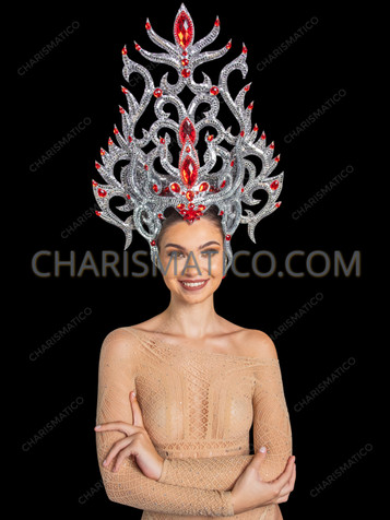 Red And Golden Crystal Studded Headdress For The Queen On Stage