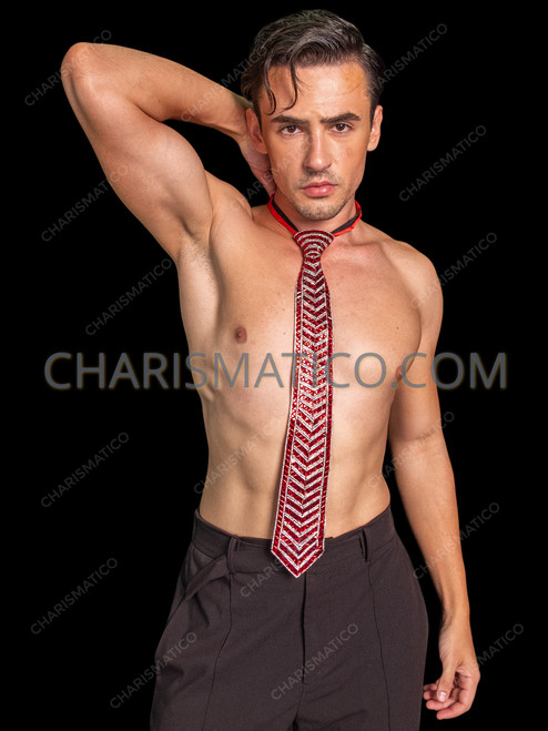 Red Rhinestone Chevron Cabaret Men's Necktie