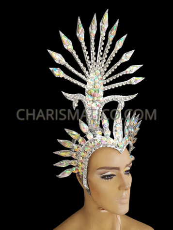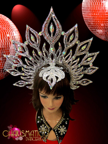 Rhinestone Covered Black Glitter Iridescent Crystal Star Burst Spiked Headdress