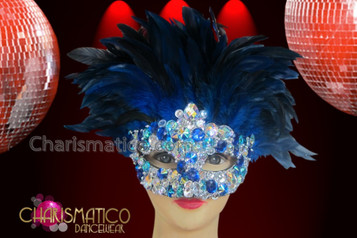 Topaz blue, intense sapphire, and clear iridescent crystals dot this carnival mask. For the Mardi Gras parade, the mask is nearly universally seen as the symbol of the festival. When you have a blue costume, a mask like this one really complements it