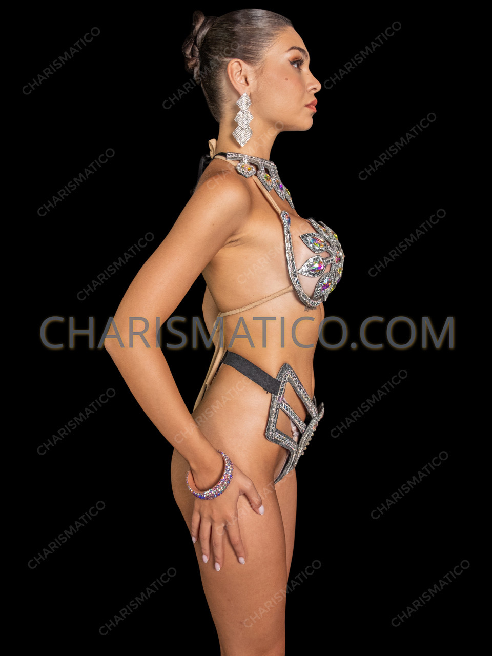 Silver Caribbean Carnival Wire Bra & Crystal Cutout Bottom Showgirl Set