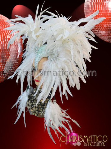 For intimate small stages this scale of headdress is ideal and it would be fantastic with a small set of wings and a beaded leotard for a complete showgirl's costume. This headdress has black dotted with crystals to make the most of the midnight shimmer.