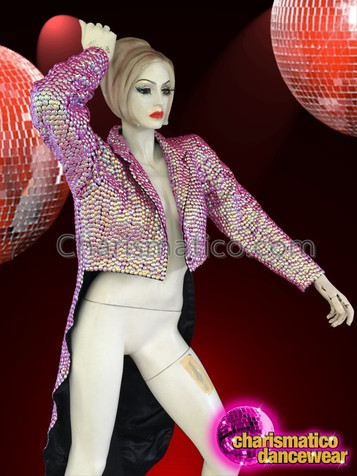 Have you dreamed of leading the Cabaret or tap dancing your way across the stage looking sexy and smart? This cap sleeve cropped tuxedo jacket in purple beading is ideally suited to make those dreams part of your reality.