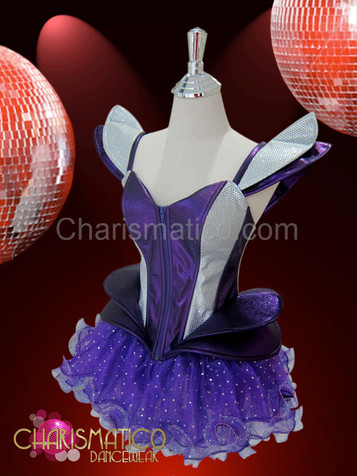 Sleek Silver Accented Sky Blue Brocade Corset And Tutu Skirt