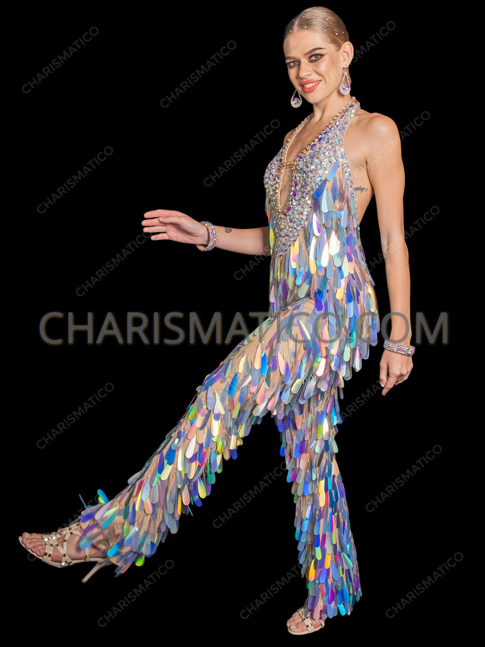 • A sequin jumpsuit suitable for divas, dancers, stage performers, and special events.